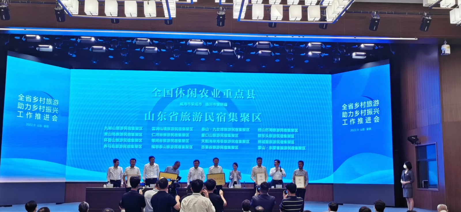 市政协副主席、蒙阴县委书记王丽云作了典型发言,蒙阴县被授予全国休闲农业重点县,桃墟镇桃墟里被授予山东省旅游民宿集聚区。