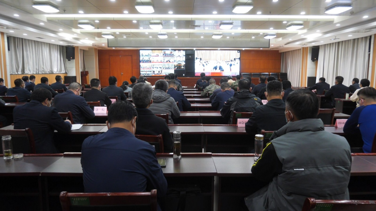 蒙阴县领导李强强、刘振超、孙令杰等收看会议。