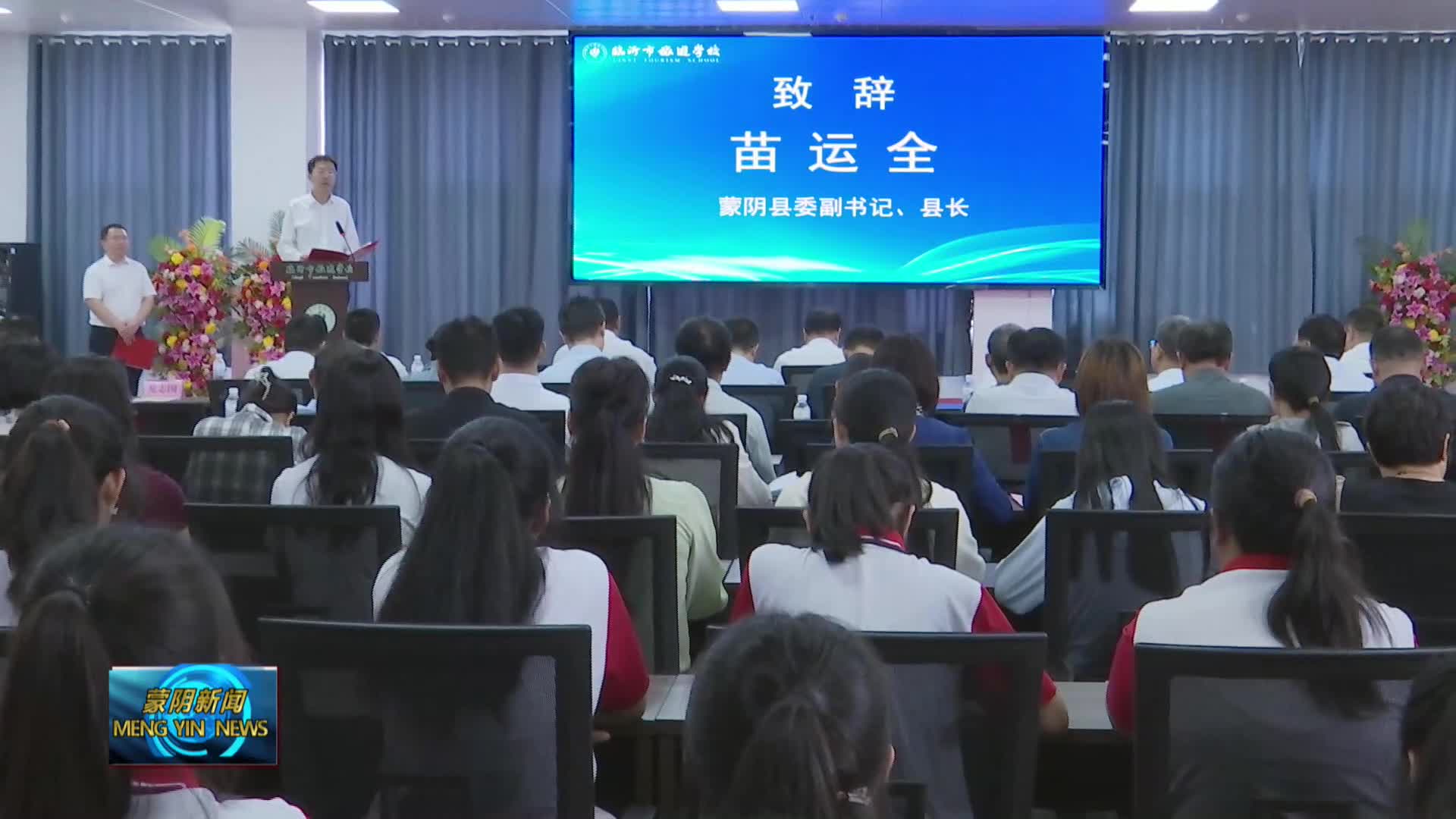 县委副书记、县长苗运全在致辞中说,发展职业教育前景广阔、大有可为。近年来,蒙阴县始终把教育事业摆在优先发展的重要位置,坚持基础教育和职业教育一体谋划、一体推进,持续加大教育投入,不断改善办学条件,实施了职业中专公共实训基地等一批职教类重点项目,支持培育职业教育名校、名校长、名教师。蒙阴县智华职业中专揭牌更名为临沂市旅游学校,标志着学校进入了新的发展阶段,将极大提高学校知名度和社会影响力,为蒙阴旅游、康养等产业提供更多的人才支持。蒙阴开放大学、蒙阴老年开放大学的揭牌,标志着蒙阴开放教育迈上了新的台阶,将为蒙阴技能社会建设、人力资源开发提供重要支撑。陈清奎院士工作室的揭牌,将加快推动建设机械制造行业产教融合共同体,为蒙阴职业教育教学服务插上“数字化”的翅膀。希望学校以此次揭牌仪式为契机,深入贯彻上级要求、学习先进经验、提升办学质量,努力培养更多博学、专精的职业技术人才