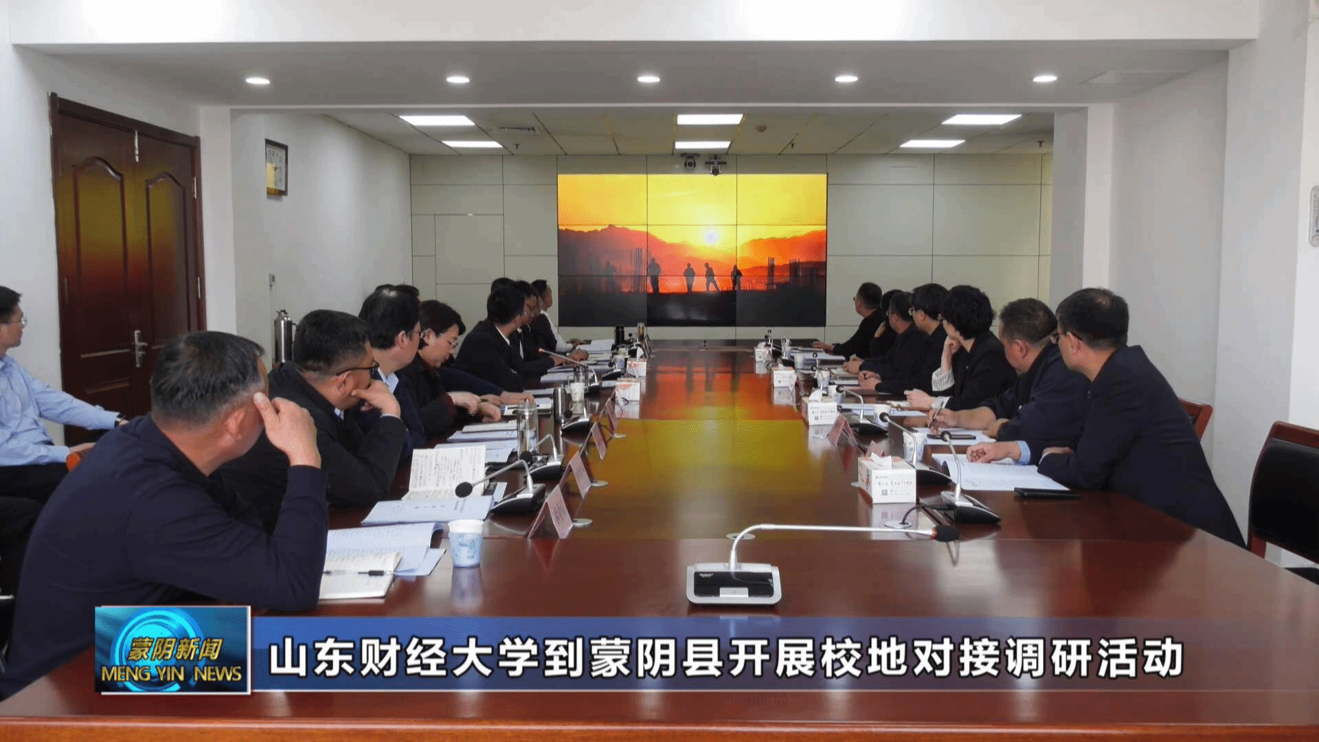 在调研座谈会上,观看了蒙阴县宣传片。苗运全详细介绍了蒙阴县基本情况,希望与山东财经大学在生态产品价值核算平台、社会实践基地、片区化推进乡村振兴、产业链企业服务、人才继续教育培训等方面开展深入合作,推动校地合作走深走实、互利共赢。其他会与人员分别介绍了有关情况,共同围绕人才培养、乡村振兴等探讨校地合作意向。