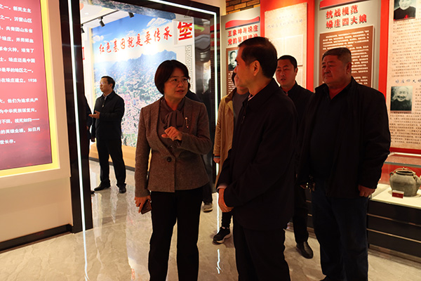 在孟良崮乡村振兴示范片区,杜德昌一行先后察看了孟良崮沂蒙精神教育培训中心、垛庄居委沂蒙精神展馆等重点项目,观看了片区工作推进汇报片,详细了解了项目建设情况及下一步工作打算。