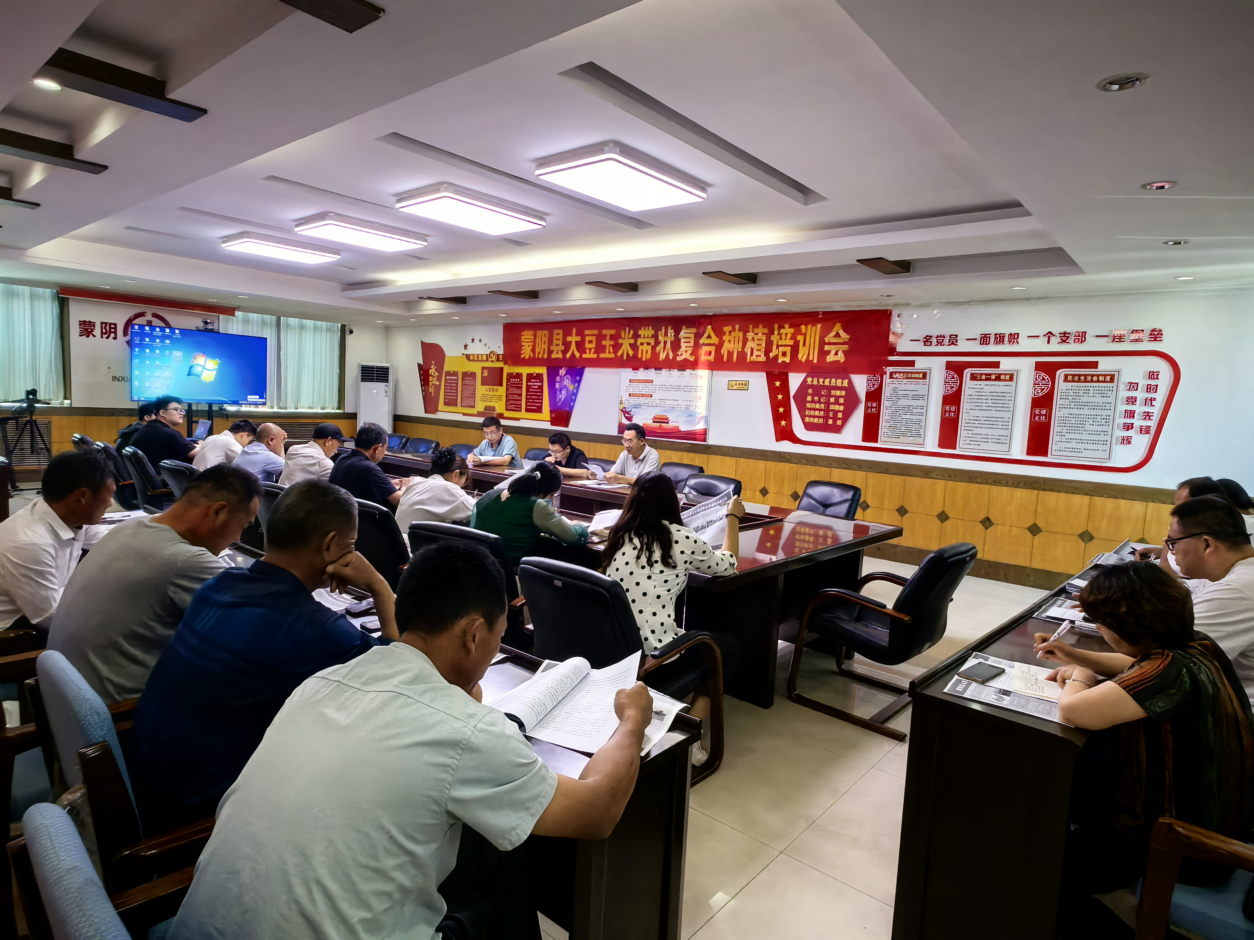 一、加强组织领导,科学统筹安排。为切实维护“三夏”期间的安全稳定,实现夏粮丰产丰收、秋粮高质量播种。县农业农村局组织召开各乡镇街区农技站长和种粮大户“三夏”生产工作会议,由农业技术推广研究员马胜坤、高级农艺师王涛针对大豆玉米带状复合种植的选种、除草、病虫害防治等方面进行讲解培训。同时对夏收夏种、水肥一体化、粮油单产提升、农机作业安全等工作进行安排部署,做好“三夏”生产准备,打好秋熟增产增收基础。