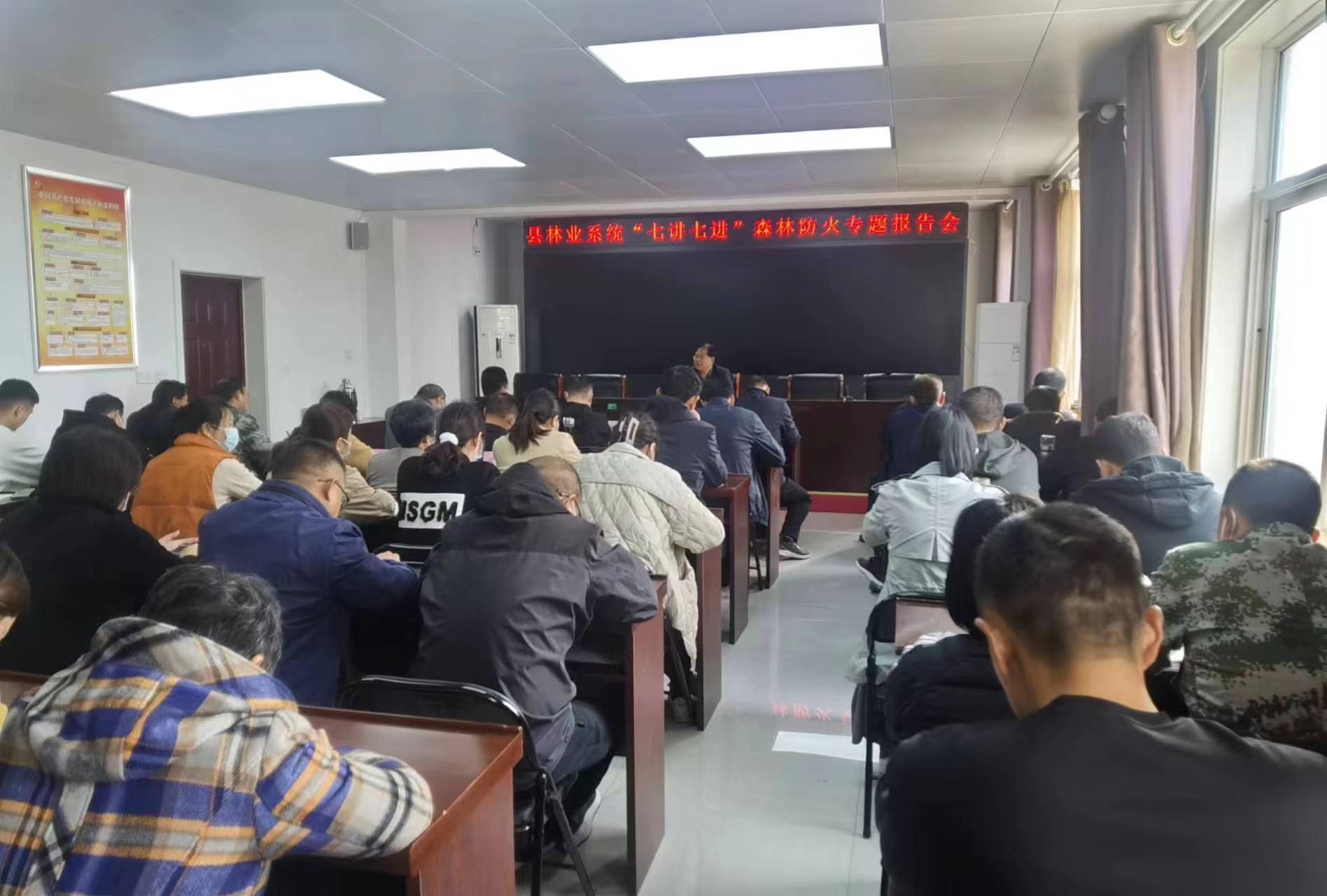 10月31日上午,县林业系统“七讲七进”森林防火专题报告会。会上,通报近期全县森林防火形势,传达市、县森林防火工作会议精神,安排部署下一阶段森林防火重点任务。县国有林场总场和县林业局全体班子成员、副科级以上干部,机关全体职工,三处国有林场负责人参加会议。