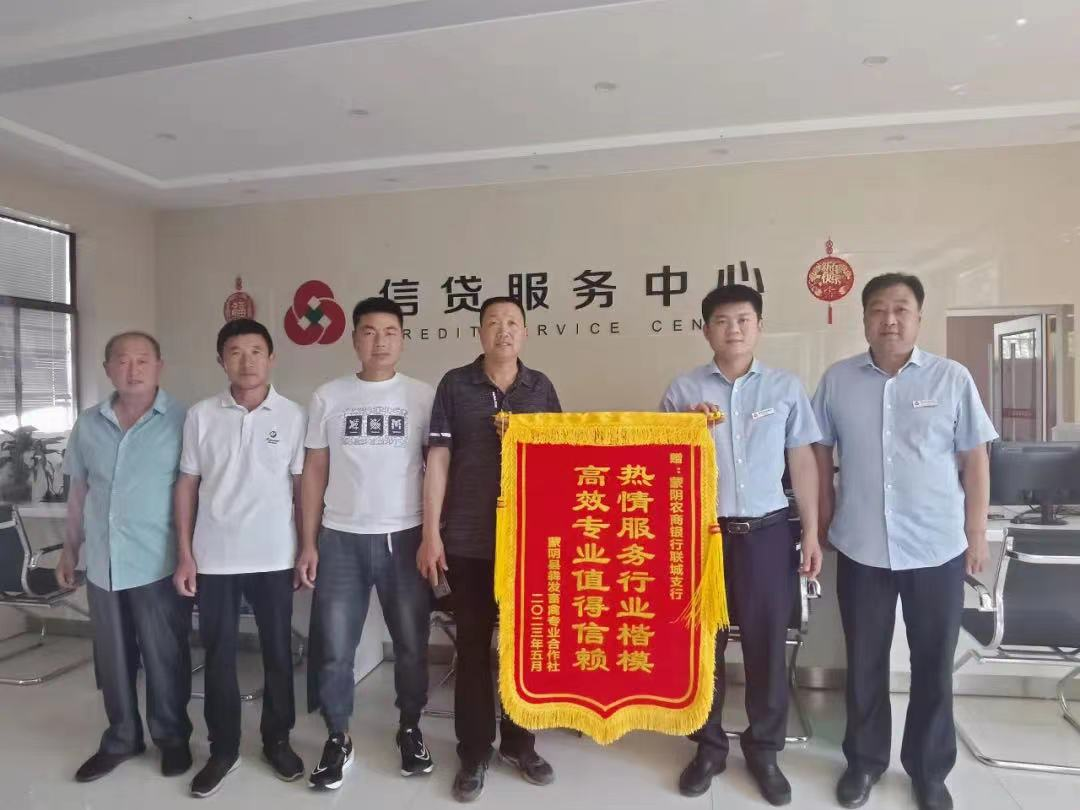“之前还担心养牛资金周转问题,蒙阴农商银行金融辅导队就给我们送来了信贷产品,真是雪中送炭!”近日,蒙阴县犇发畜禽专业合作社理事长孙奇德来到蒙阴农商银行联城支行,为该行送上了一面印有“热情服务行业楷模,高效专业值得信赖”的锦旗。