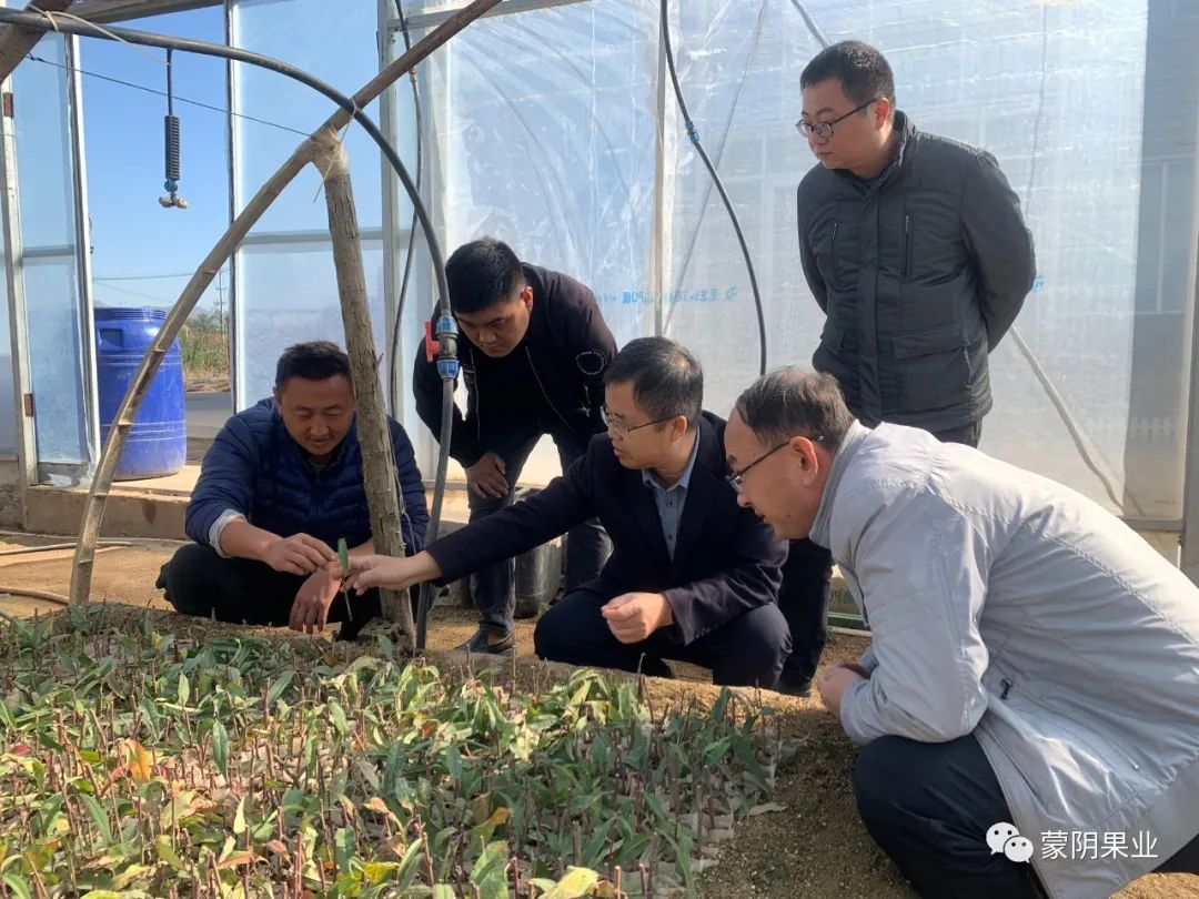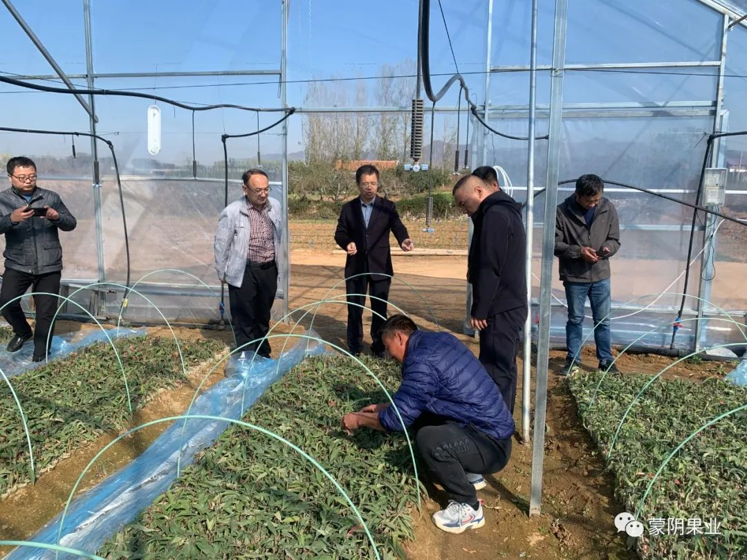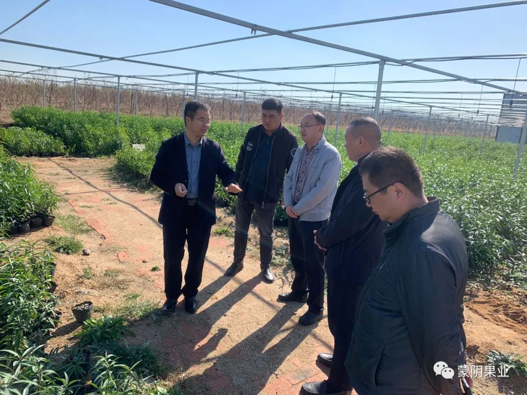 11月7日上午,国家桃产业技术体系种苗扩繁与生产技术岗位专家、甘肃省农科院林果花卉研究所所长王鸿研究员,中国农科院郑州果树所牛良副研究员,山东省果树研究所李桂祥副研究员,在蒙阴县果业发展服务中心副科级干部王孝友、金葵农业公司王言文经理陪同下调研蒙阴蜜桃种苗繁育。