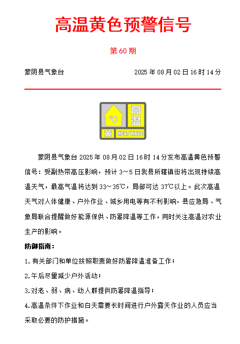 高温黄色预警信号20250802
