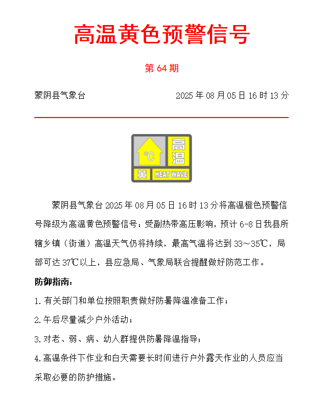 高温黄色预警信号20250805