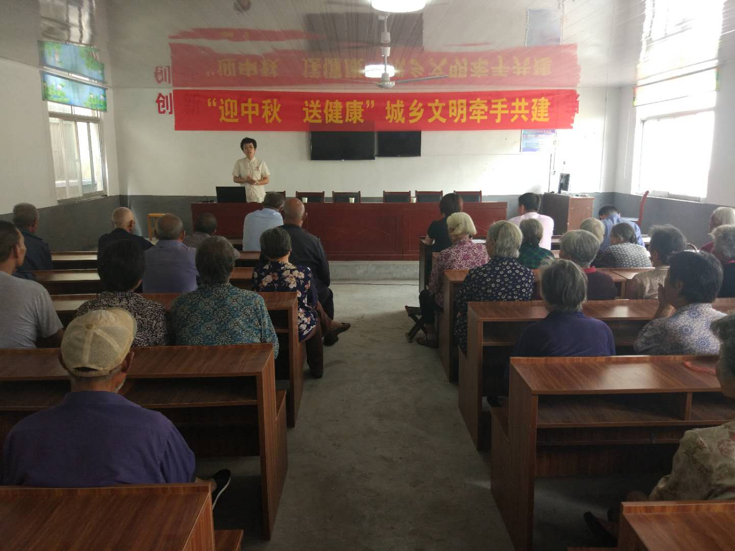 活动中市妇女儿童活动中心为村里60位老年人送去了月饼和衣服等物品,同时邀请经络学专家丁艳玲教授为老年人们现场讲解了《312经络养生锻炼法》,祝福老年人们身体健康,中秋节快乐。