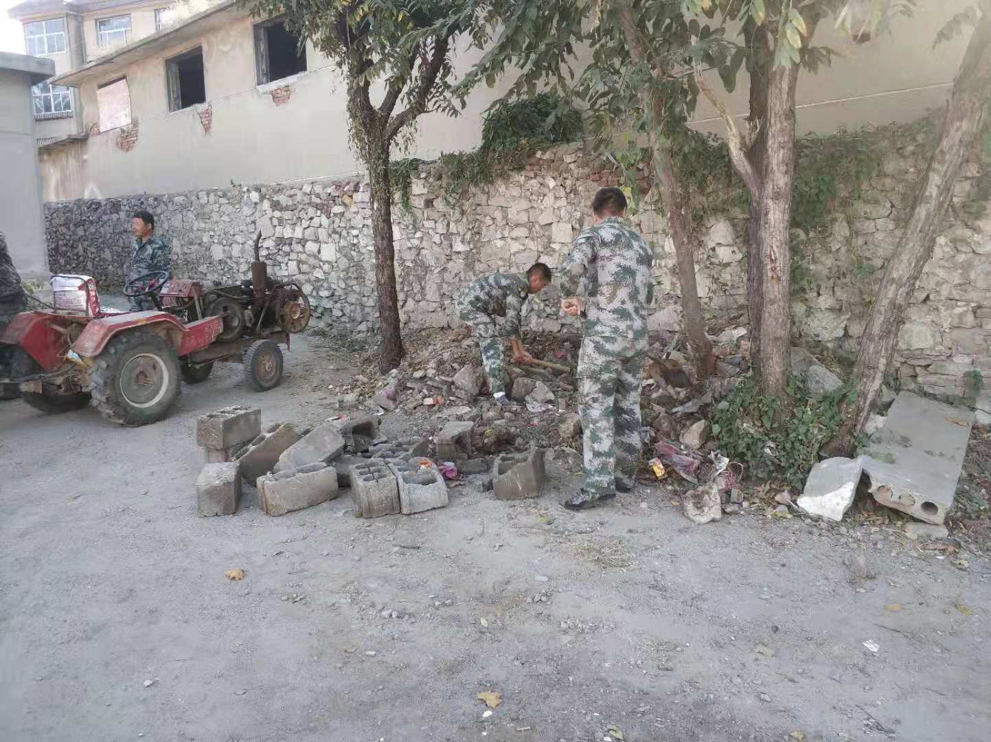 10月28日,七网格牵头单位林业局组织人员对大修厂家属院土堆石堆进行清理。