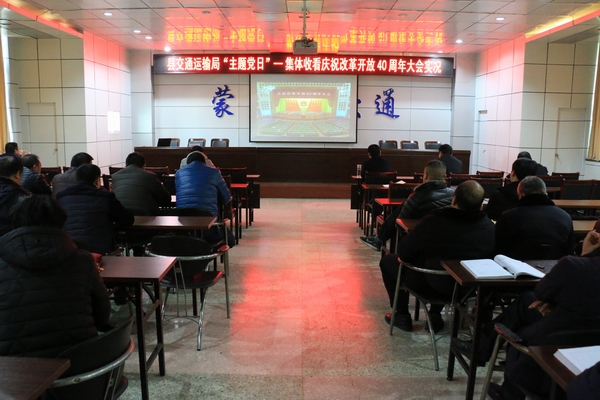 12月18日上午,庆祝改革开放40周年大会隆重举行,县交通运输局积极组织全体党员在该局五楼会议室收听收看了大会实况。