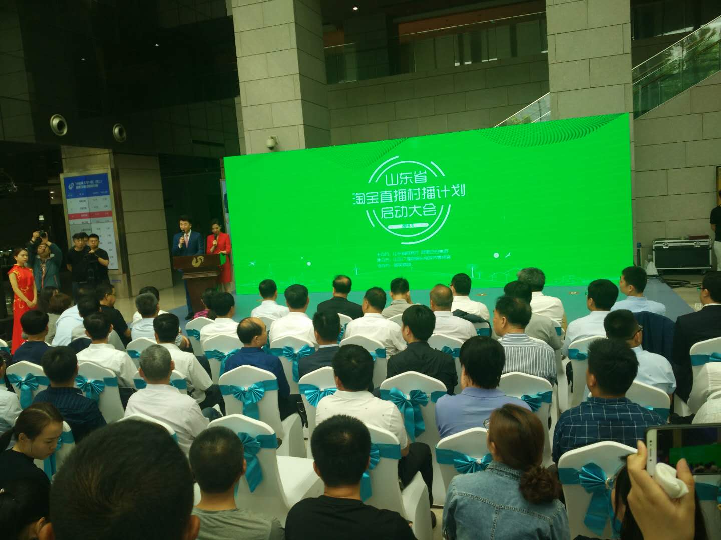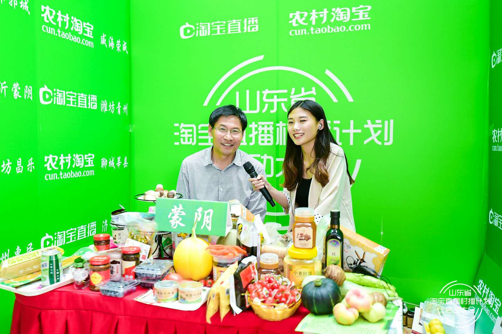 5月16日上午,山东省淘宝直播“村播计划”启动大会在山东广播电视台新大楼一层大厅隆重举行。此次活动由省商务厅、阿里巴巴集团共同主办,山东广播电视台电视齐鲁频道承办,荟买商城协办。蒙阴县被授予“2019淘宝直播村播试点县”,这是临沂市首家,也是唯一一个村播试点县。蒙阴县人大常委会副主任李玉国、蒙阴县商务发展服务中心主任李长勇带队参加启动仪式,并积极走进直播间与淘宝主播一起为蒙阴农特产品宣传推广。