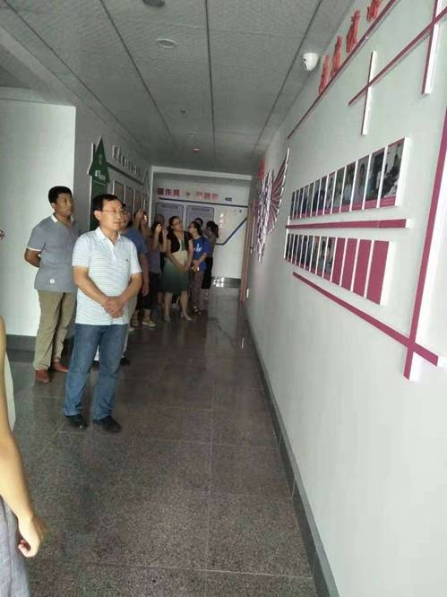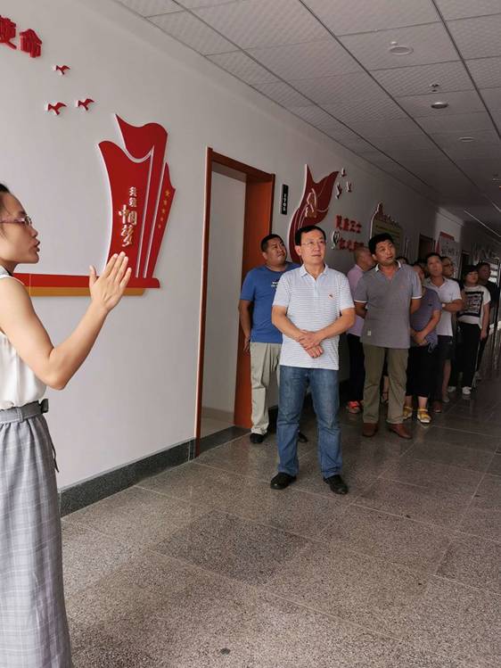 党员们在张苏婉的带领下一起参观学习党建工作。