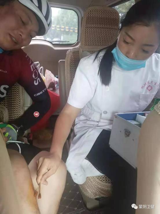 比赛中医务人员认真对选手出现的一些腿部肌肉抽筋、皮肤擦伤、膝盖关节疼痛、中暑前兆等问题一一给予妥善解决,为整个赛事提供了全方位的医疗保障,全体医护人员用自己的实际行动向社会传递了我县医疗卫生行业的正能量,圆满完成了此次自行车比赛的医疗保障任务。