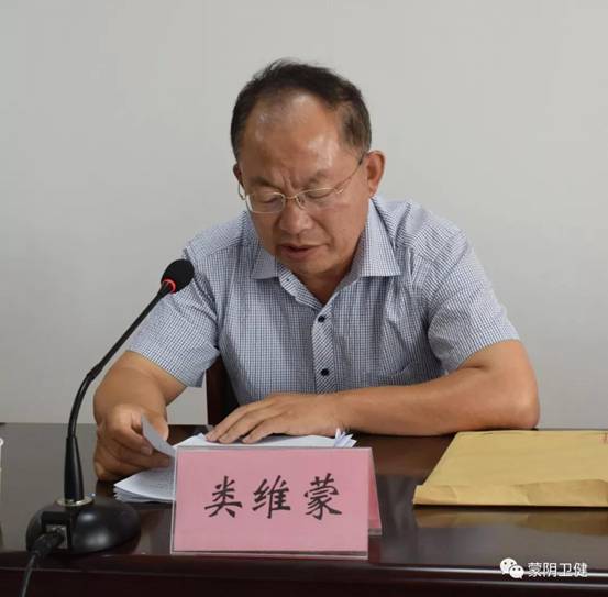 9月18日下午,蒙阴县卫生健康系统“不忘初心、牢记使命”主题教育工作会议在县卫健局会议室召开,县卫健局党组成员、科级干部、局机关全体干部职工,各医疗卫生单位主要负责人参加会议,县纪委派驻第八纪工委书记、县委第八巡回指导组组长类维蒙出席会议并讲话;县卫健局党组成员王孝常主持会议。![]()