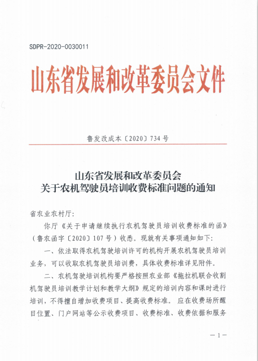 【价格和收费】转发《关于农机驾驶员培训收费标准问题的通知》的通知