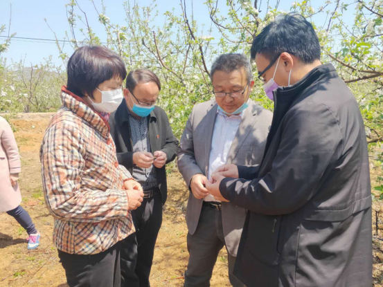 张安宁研究员一行到岱崮镇、野店镇、高都镇等果品生产重点乡镇进行调研指导,现场了解探讨果园肥水药一体化、病虫害生态防控、果树枝条综合利用、晚霜冻害等技术。