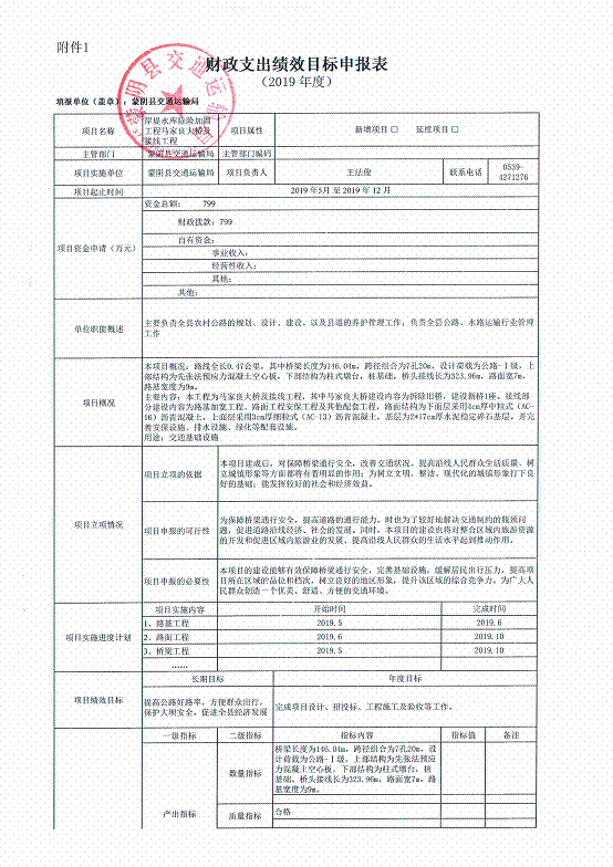 【预决算表格】2 岸堤水库除险加固工程马家良大桥及接线工程项目绩效申报表