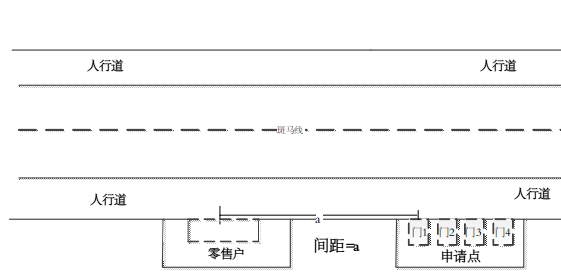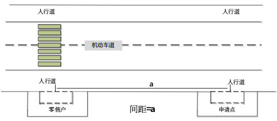 1.申请点与最近零售点经营场所同侧无障碍物的,测量最短直线距离。(如图1所示)