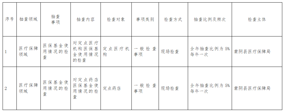 2024年蒙阴县医疗保障局“双随机、一公开”抽查计划
