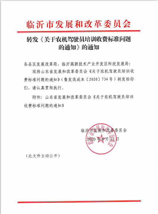 【价格和收费】转发《关于农机驾驶员培训收费标准问题的通知》的通知
