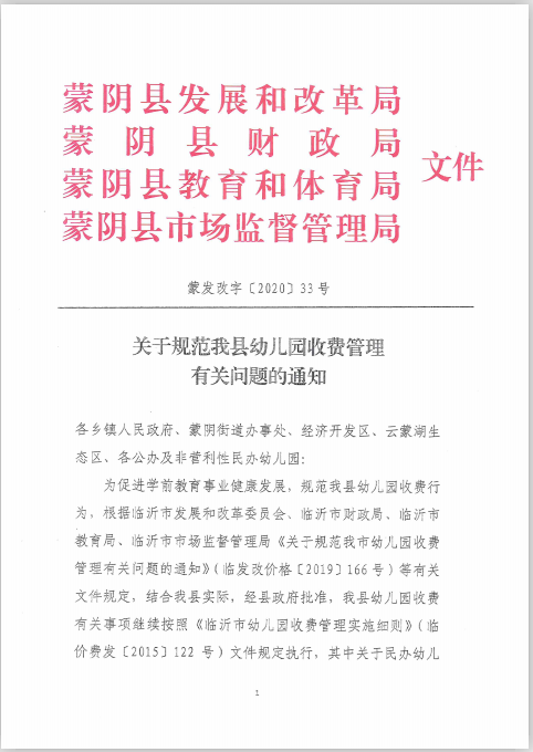 【价格和收费】关于规范我县幼儿园收费管理有关问题的通知
