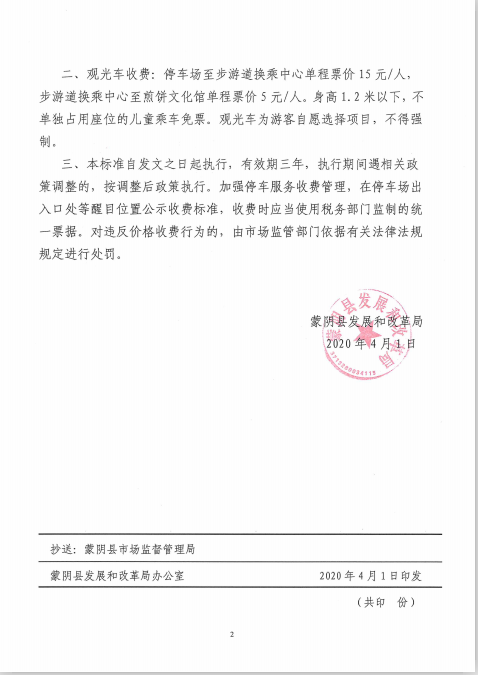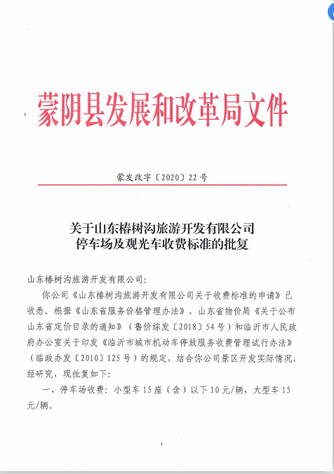 【价格和收费】关于山东椿树沟旅游开发有限公司停车场及观光车收费标准的批复