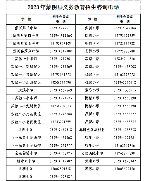 | 蒙阴县人民政府办公室关于印发《2023年蒙阴县中小学校幼儿园招生工作实施方案》的通知 |